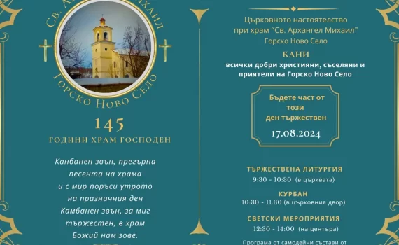 Уважаеми приятели и жители на село Горско Ново село, както […] Покана за отбелязване на 145 години от създаването на храм …